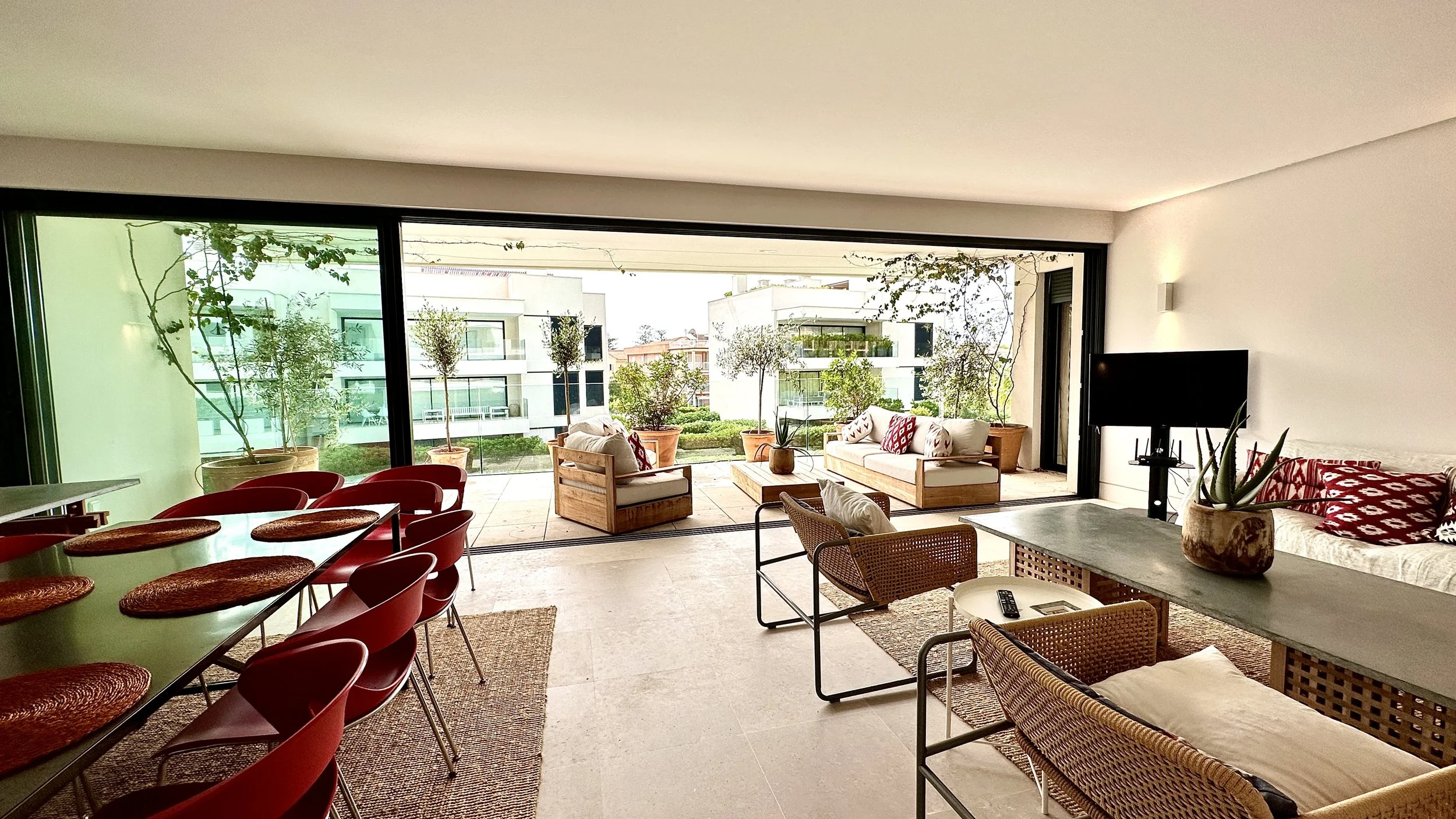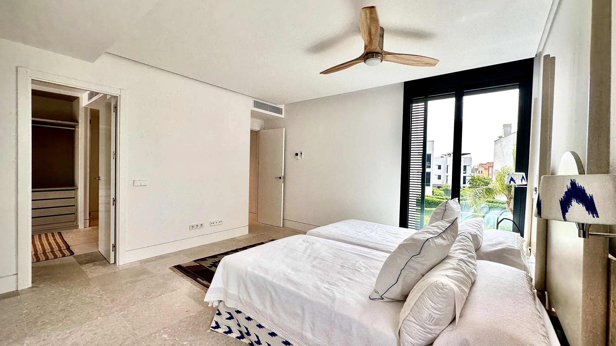For rent for the first time this fabulous flat in one of the most luxurious complexes in Puerto Pollensa, with the beach at 100 meters, 3 bedrooms (one huge with dressing room) large and 3 bathrooms, plus garden as in photos and videos, storage room, garage, it is huge.