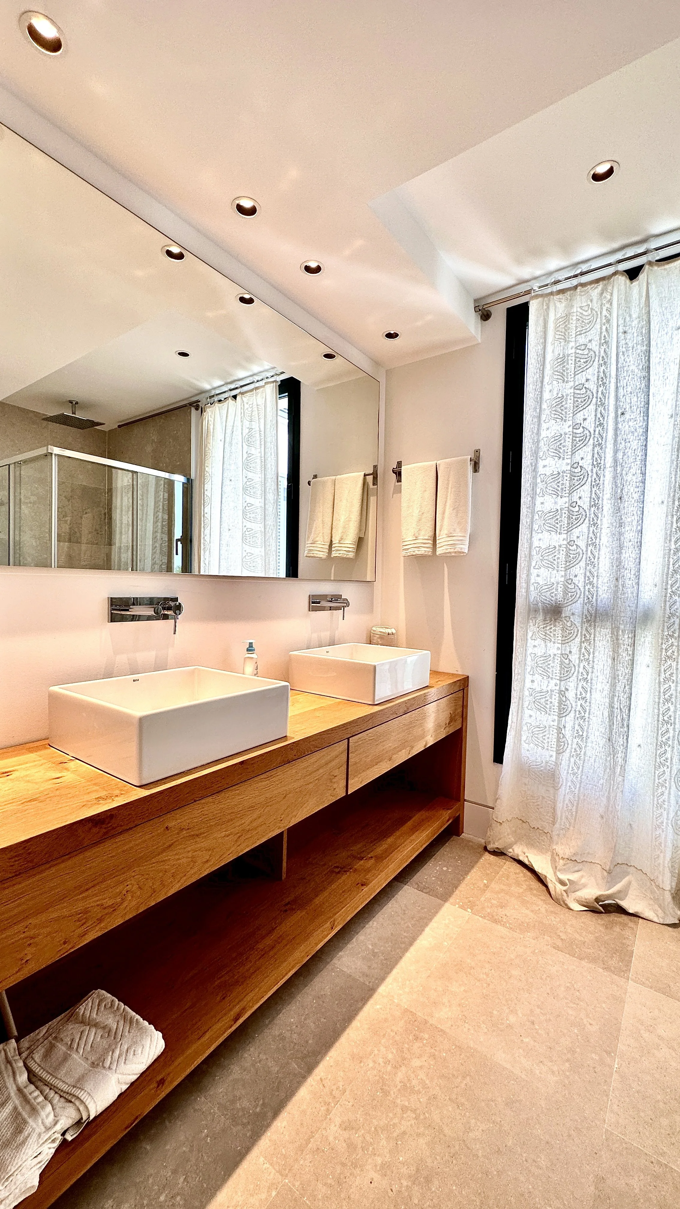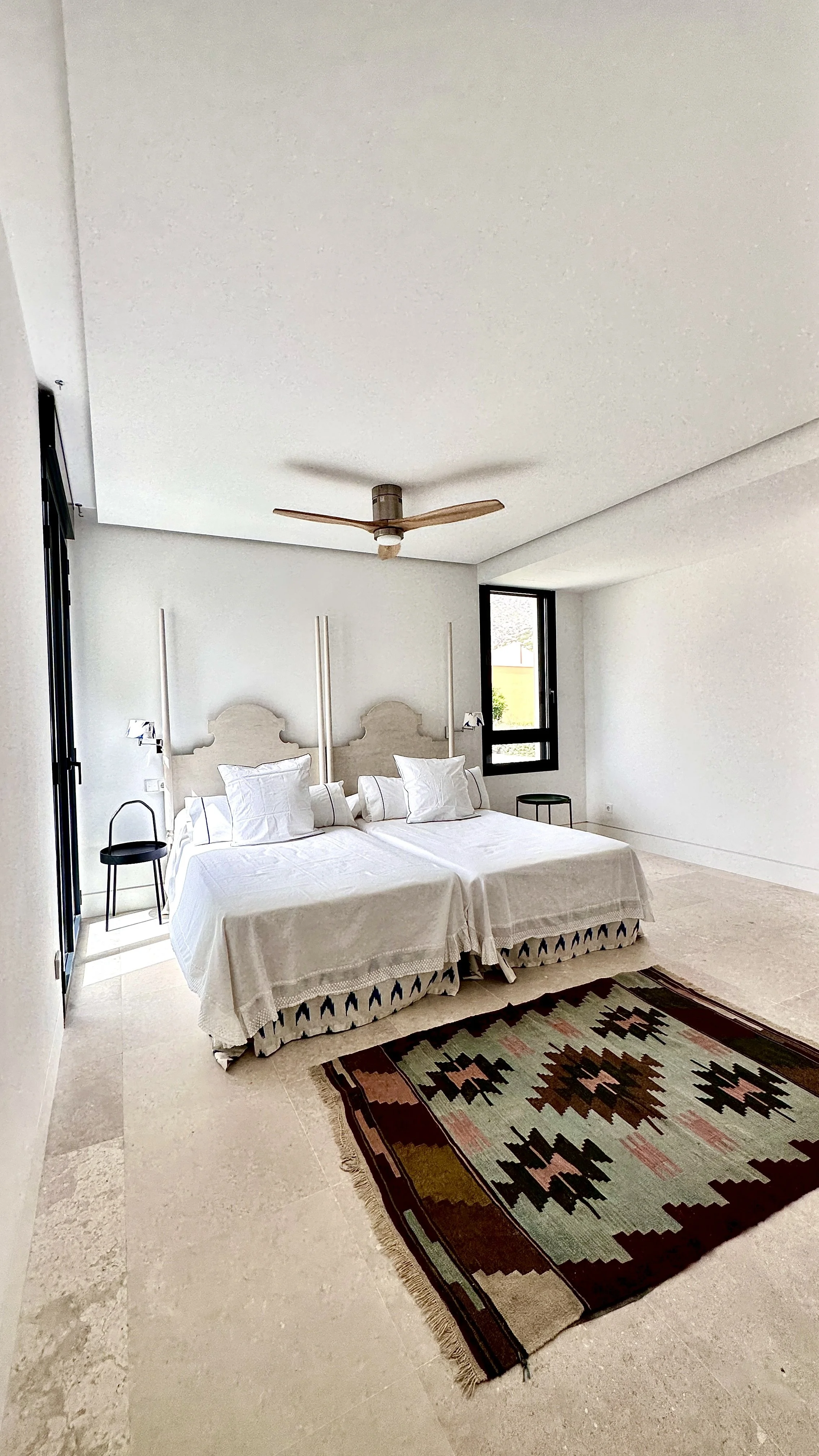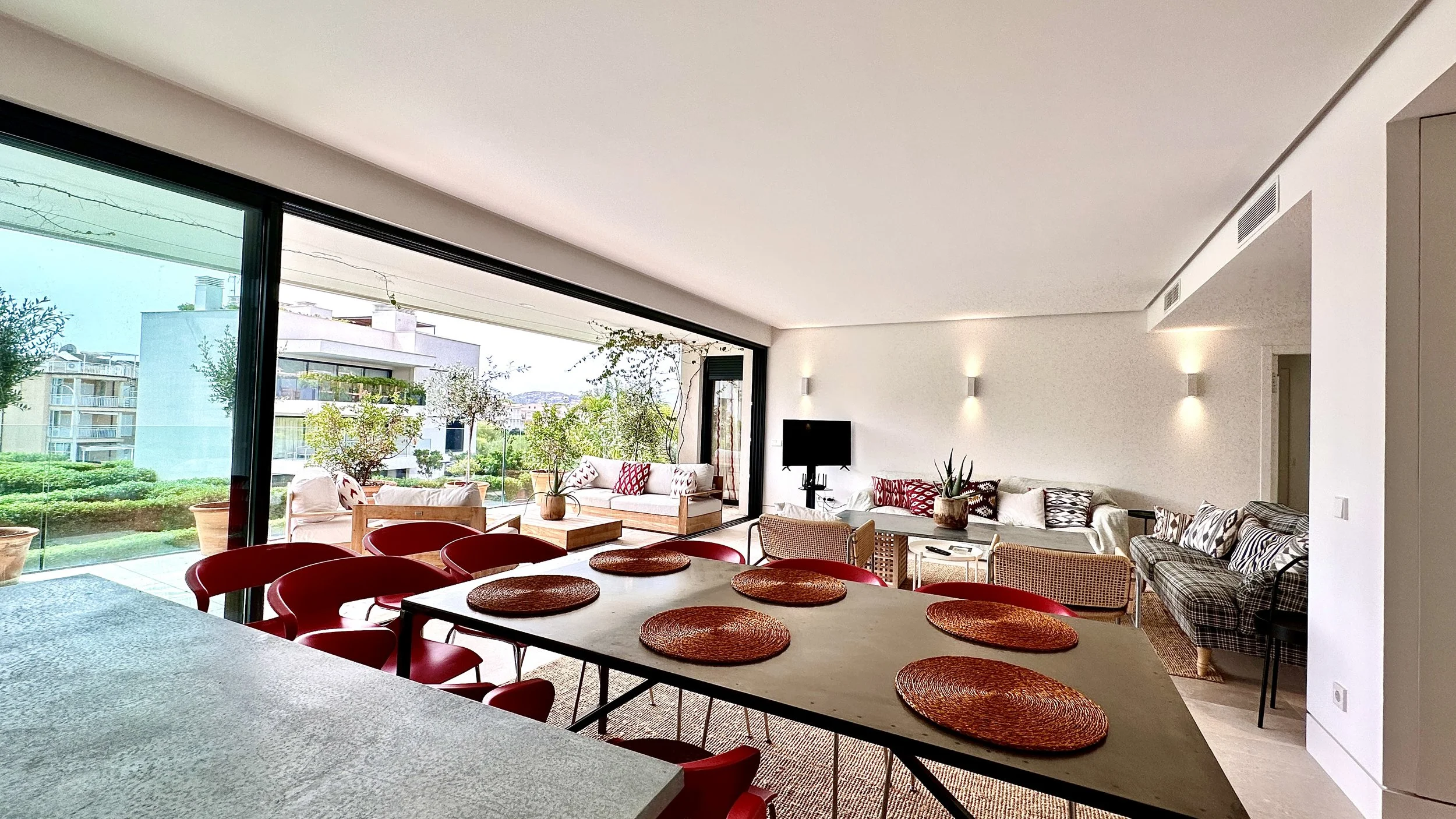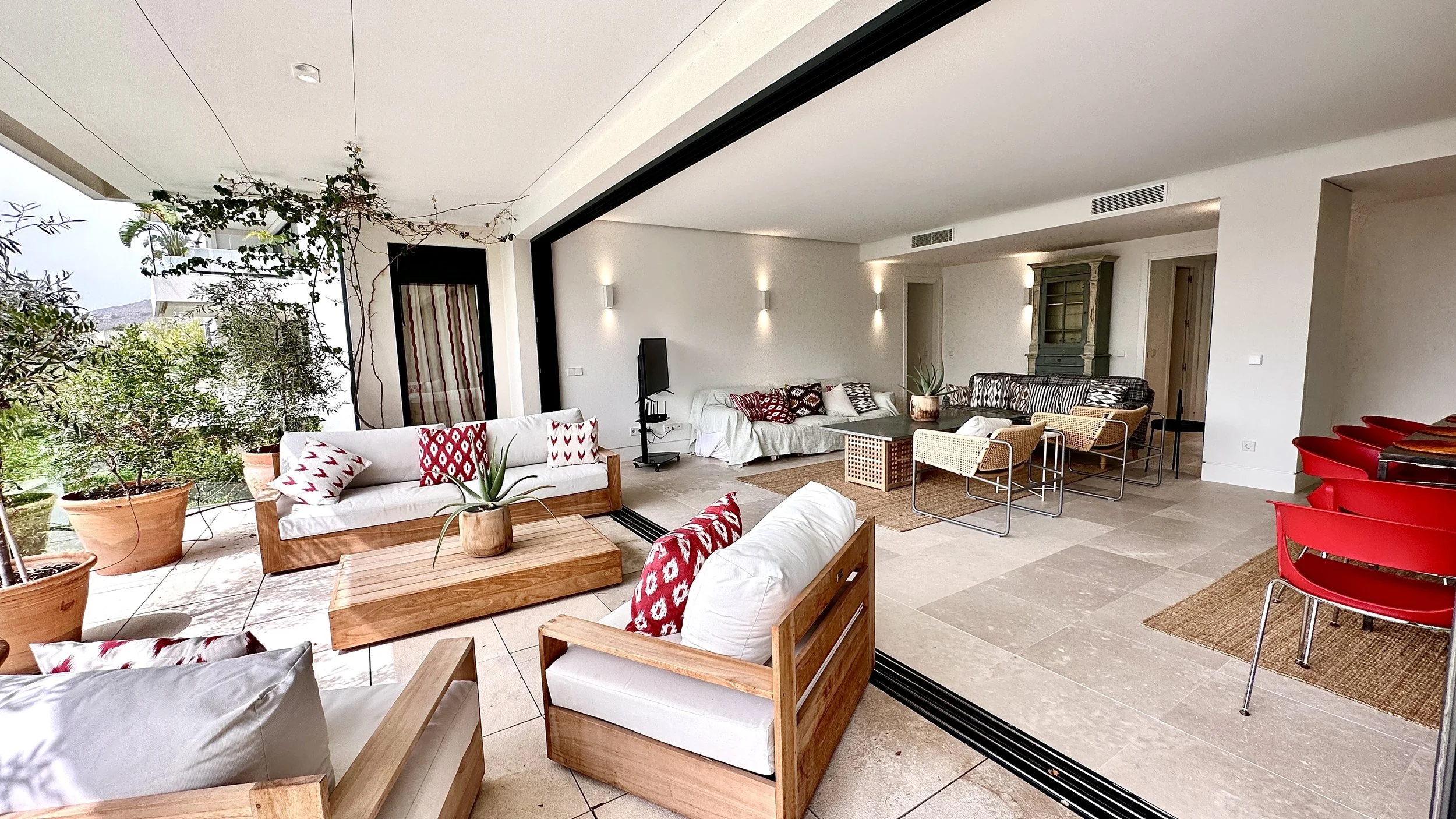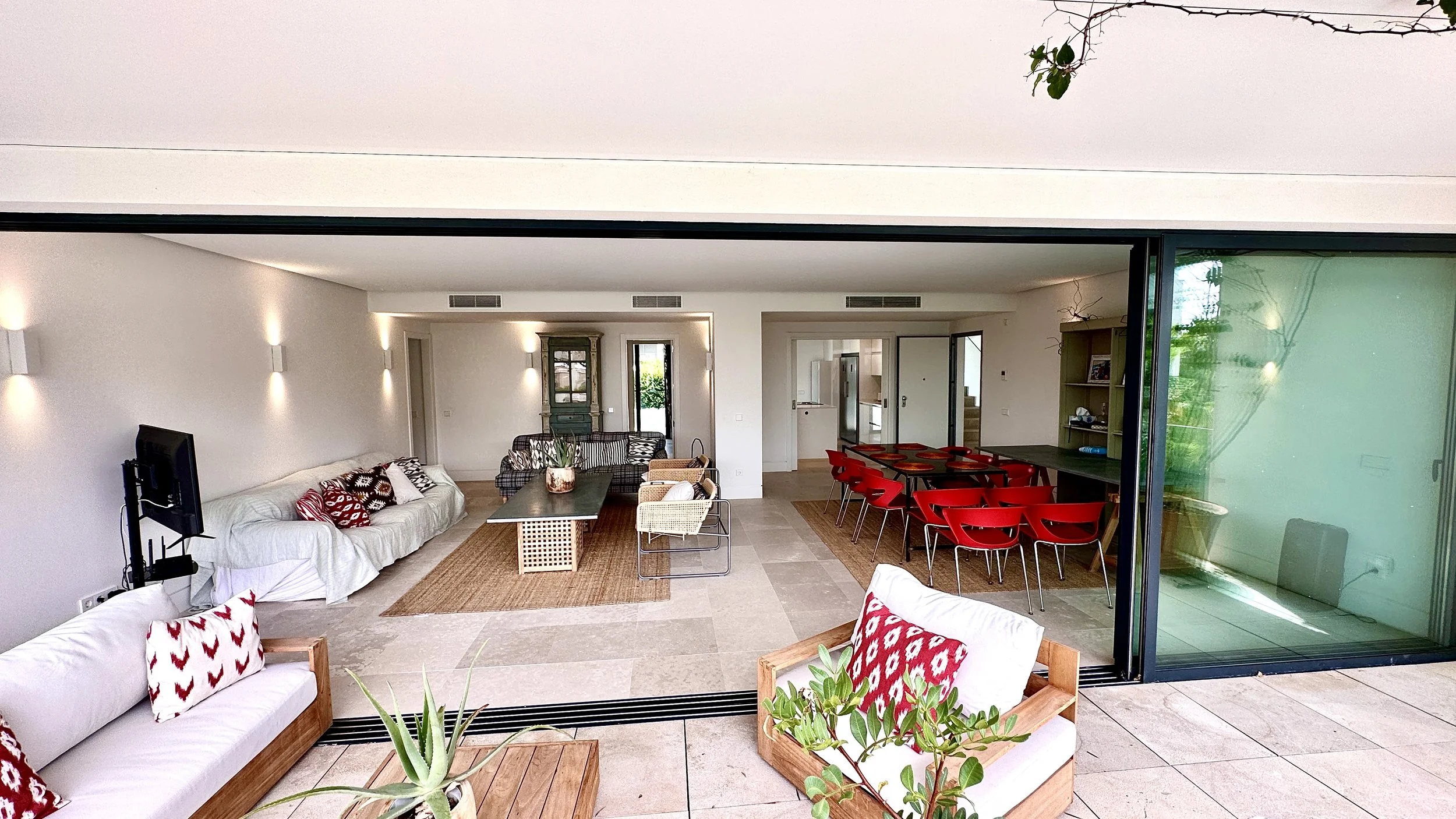 It has three double bedrooms, and three bathrooms (all of them in suite), a huge living room with capacity for 15 people and a very large dining room for a large family.